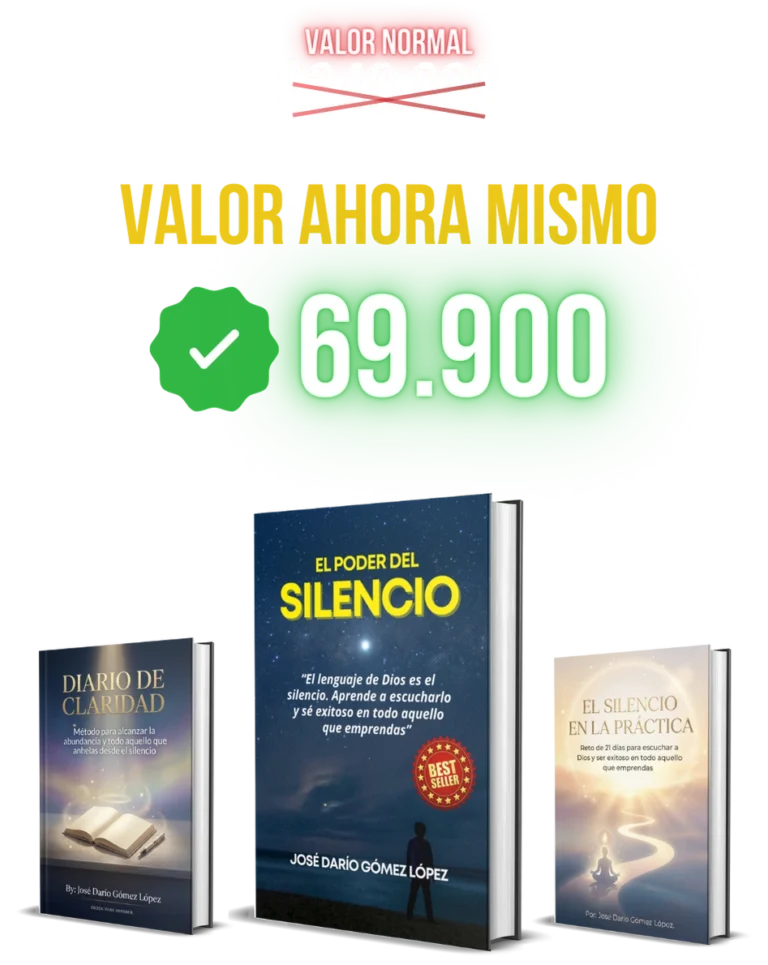 Recibirás en tu correo electrónico el libro "EL PODER DEL SILENCIO" (Best Seller #1 en Amazon) en formato digital de alta calidad, listo para leer en tu móvil, tablet o computador.